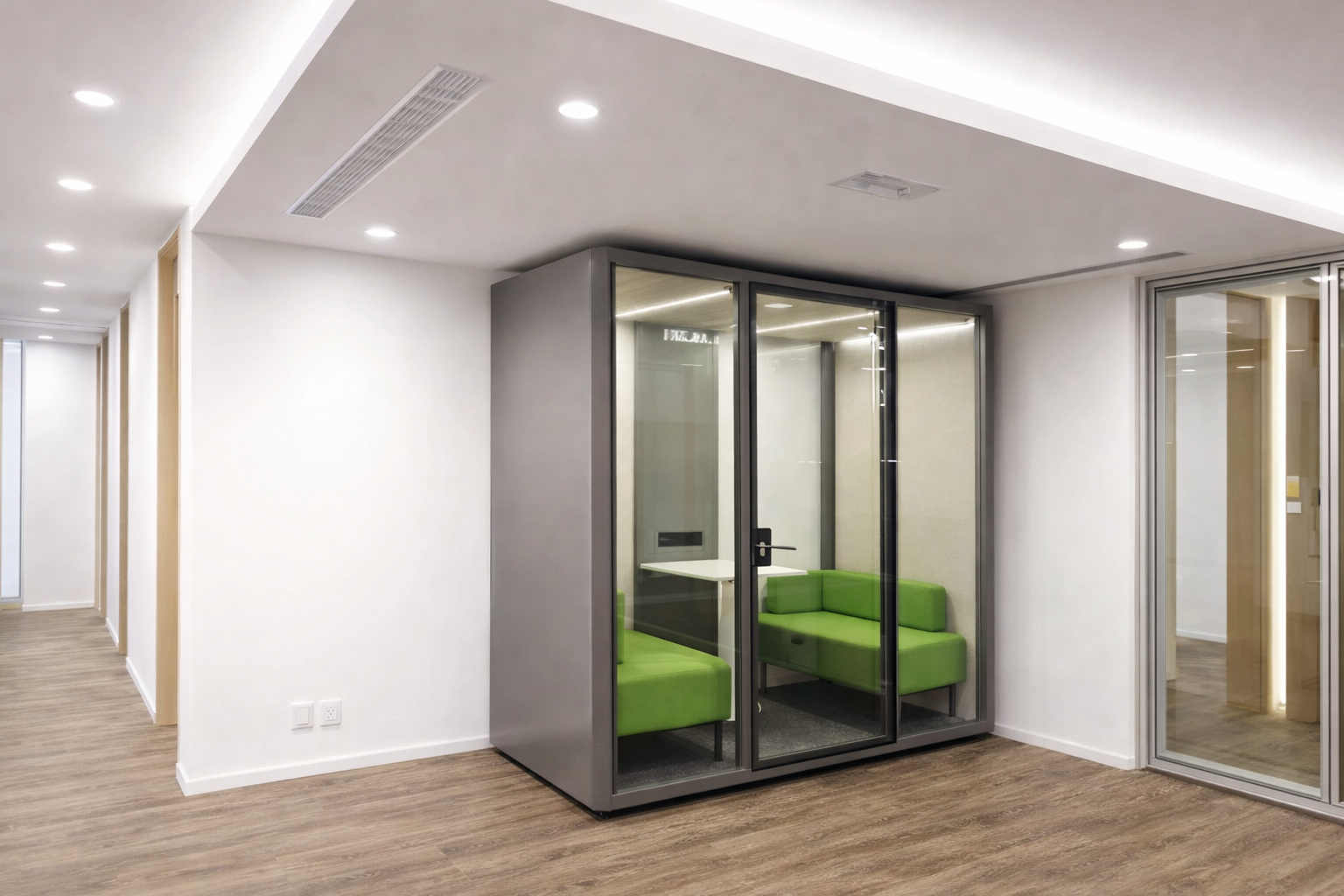 福田スペースでは、防音性能と快適性を重視した静音ブースを取り扱っております。